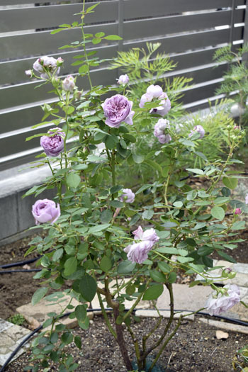 リヒト、フラゴナール、エマ・ブリッジウォーターはシュラブなので、木によって違いはあるけれども、開花ではなく、成長の方により多くにエネルギーを使ったみたい。 それぞれシュートがいっぱい出て、葉が例年になくもりもりで元気いっぱい。