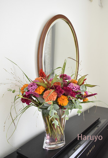 秋の花材でアレンジメント 2015
