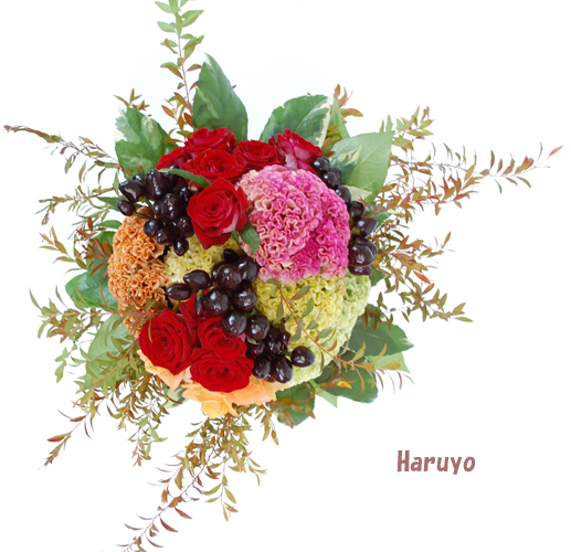 秋の花束*セッカケイトウ、ブラック・コニカル、バラ(ルビーレッド) 2011