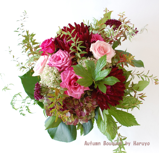 ダリア黒蝶と秋色アジサイの花束 2009