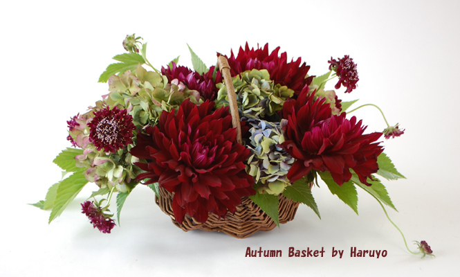ダリア黒蝶と秋色アジサイのバスケット 2009