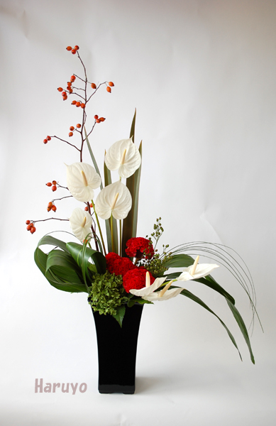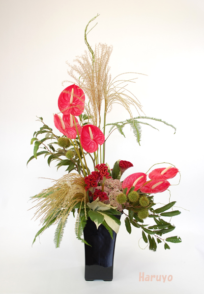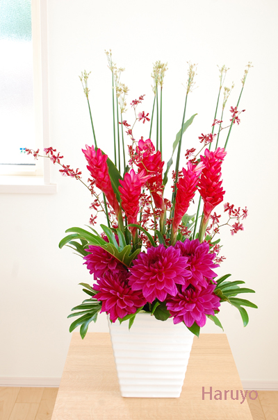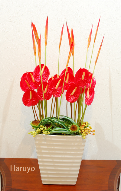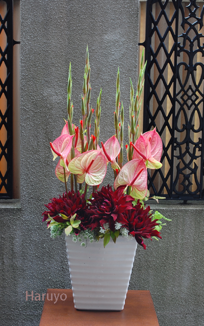 ダリアとアンスリウムのパラレル・アレンジメント 2014