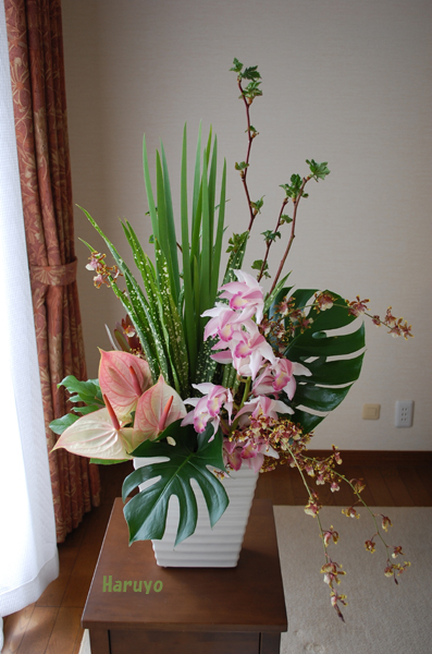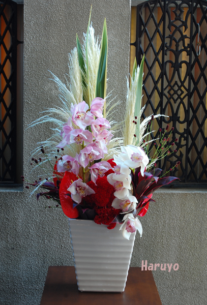 秋のトロピカル・アレンジメント*パンパス、シンビジウム 2013