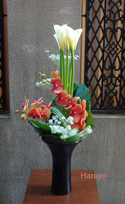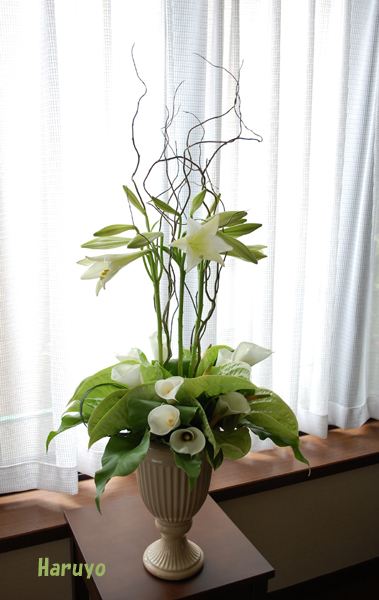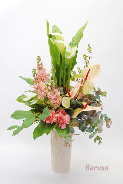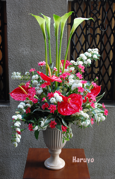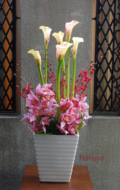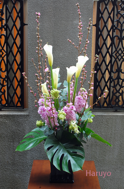 花桃とカラー(ウエディング・マーチ)のアレンジメント 2014