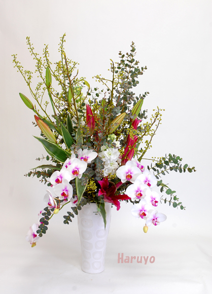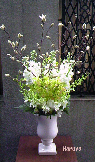 早春のアレンジメント*アオモジ、胡蝶蘭 2013