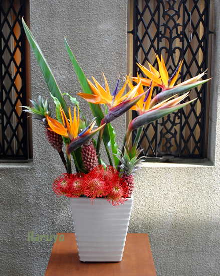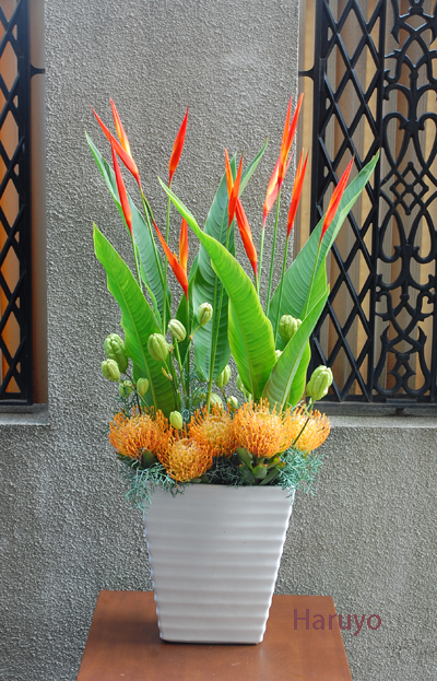 トロピカル・アレンジメント*ストレリチア、ピンクッション 2014