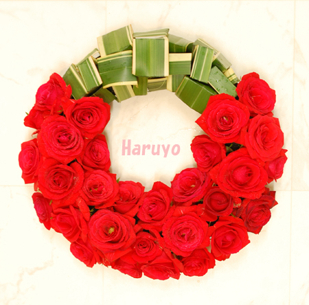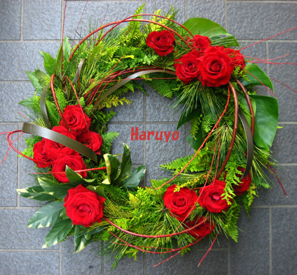 赤いバラとサンゴミズキのフューネラル・リース 2008