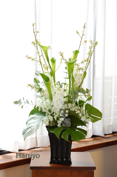 ストック、カラー(グリーンゴッデス)、ユリ(シベリア)とともに。